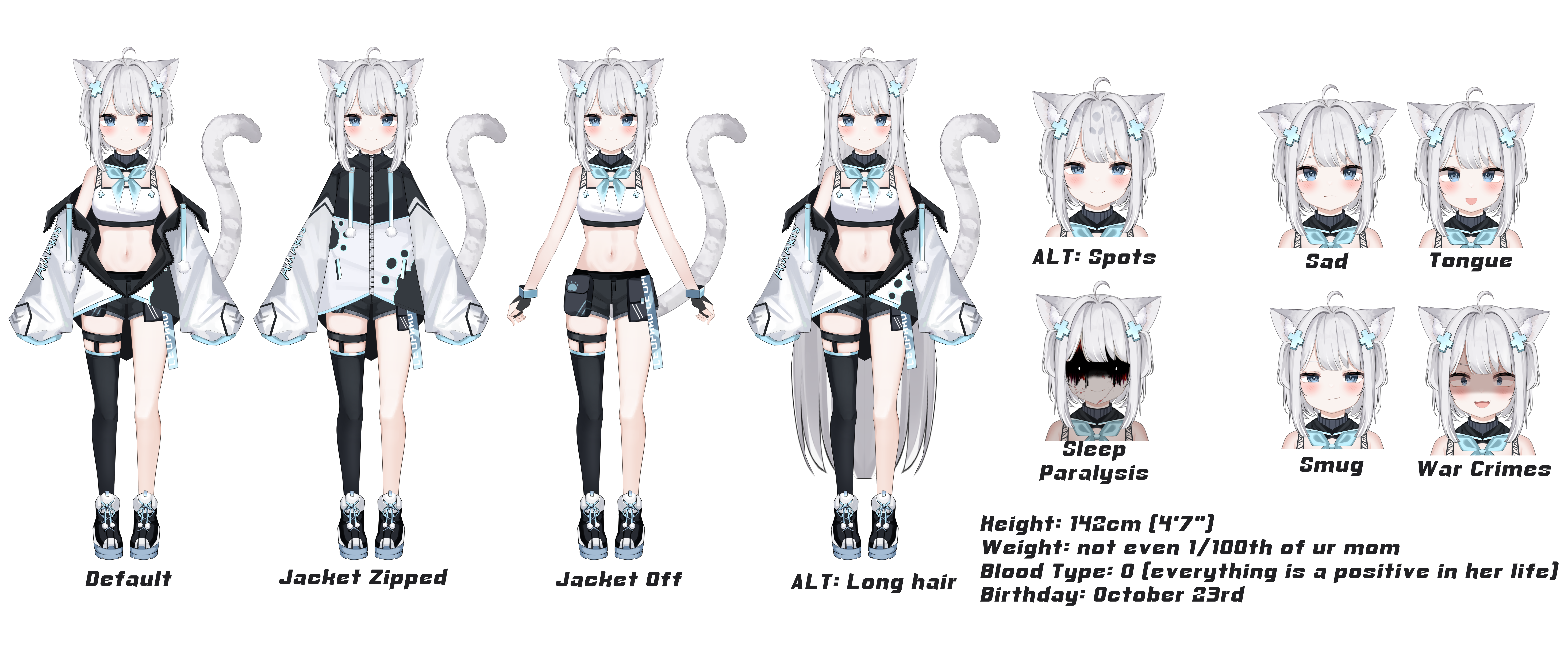 Snow leopard spots in her hair were added later but are now the canonical appearance